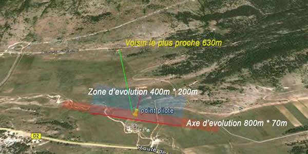 de 400 x 200 mètres et 150 mètres d’altitude.